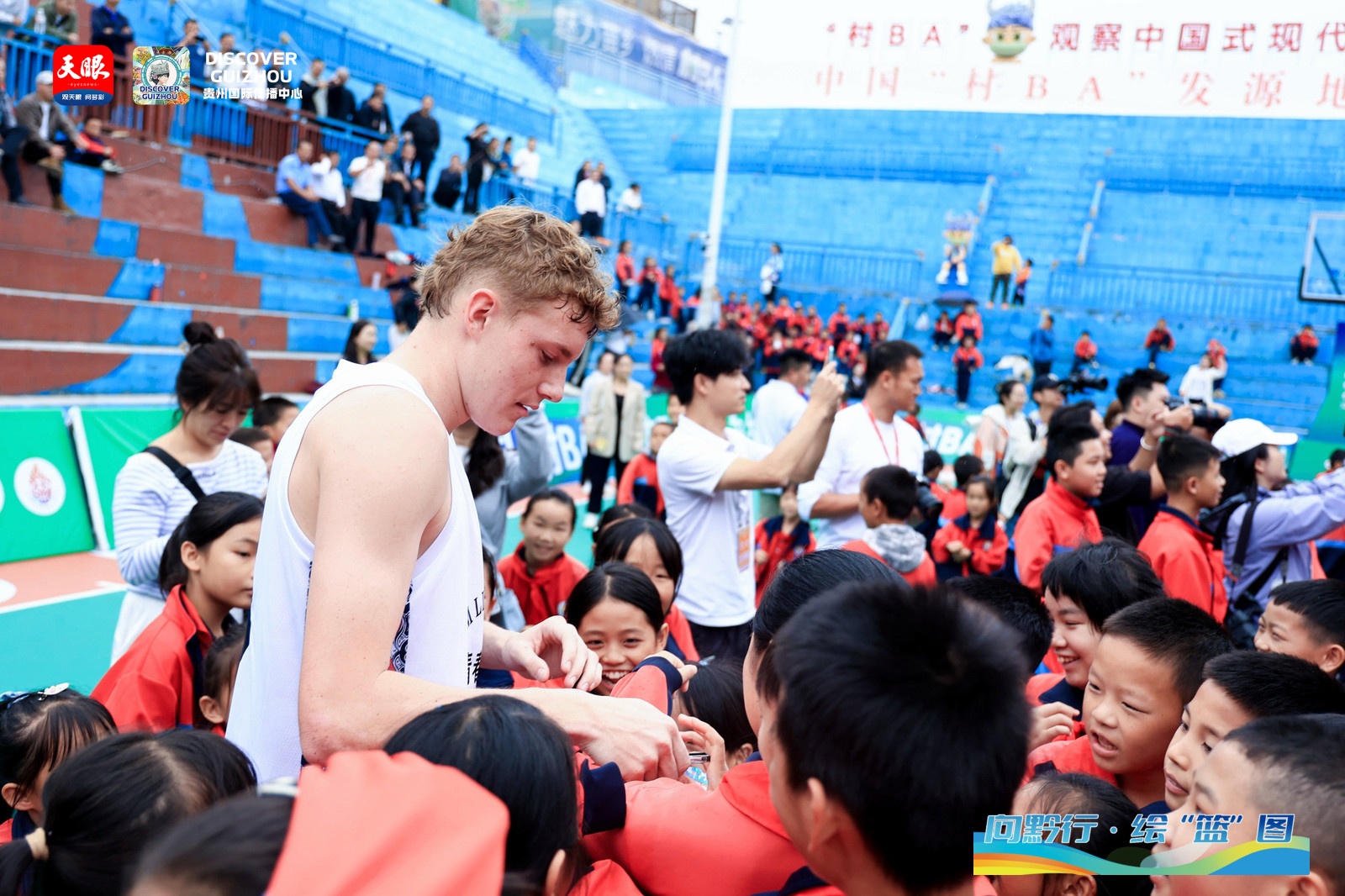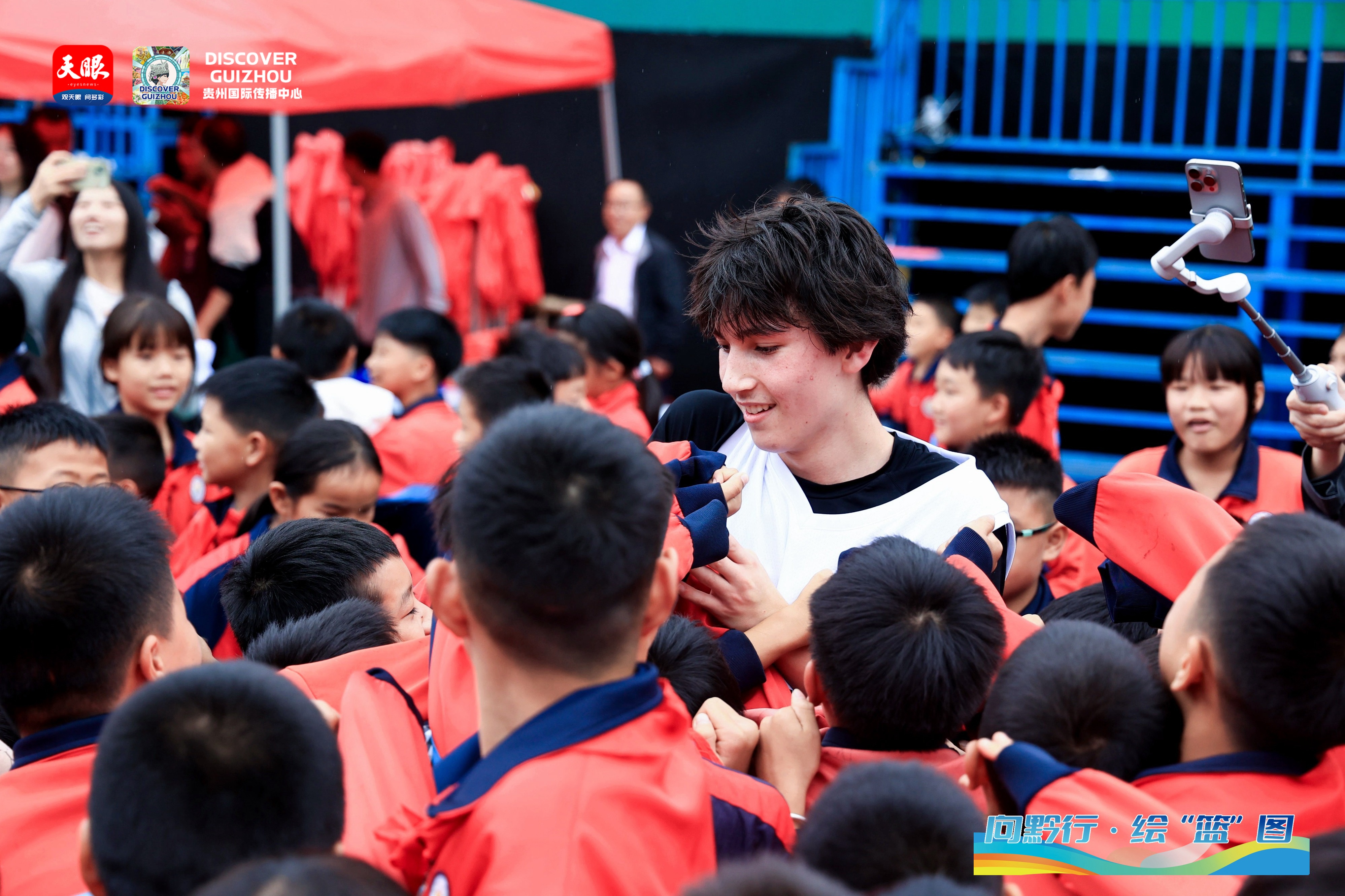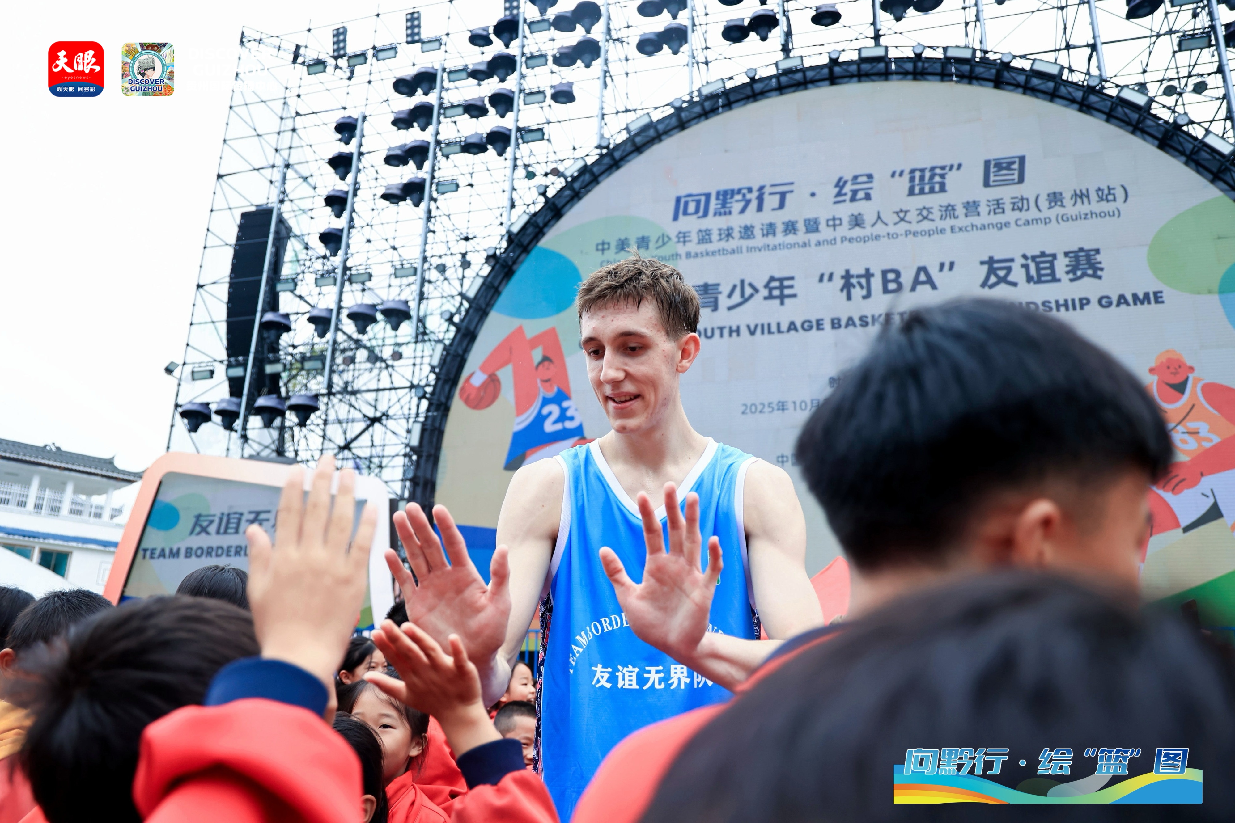 On October 14, the China-U.S. Youth Basketball Invitational and People-to-People Exchange Camp visited the“Village BA” court in Taipan Village, Taijiang County, Guizhou Province. As soon as the young players from Utah Prep Academy in the United States stepped onto the court, they were greeted by the warmth and enthusiasm of the local audience and students. They walked to the sidelines to exchange high-fives and take photos with the students, sharing sincere smiles and handshakes that conveyed a youthful friendship transcending language and borders.