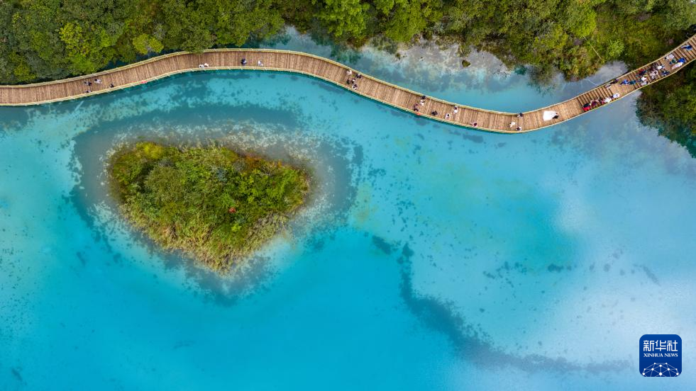 ??9月8日,游客在藍月谷游玩(無人機照片)。新華社記者 胡超 攝