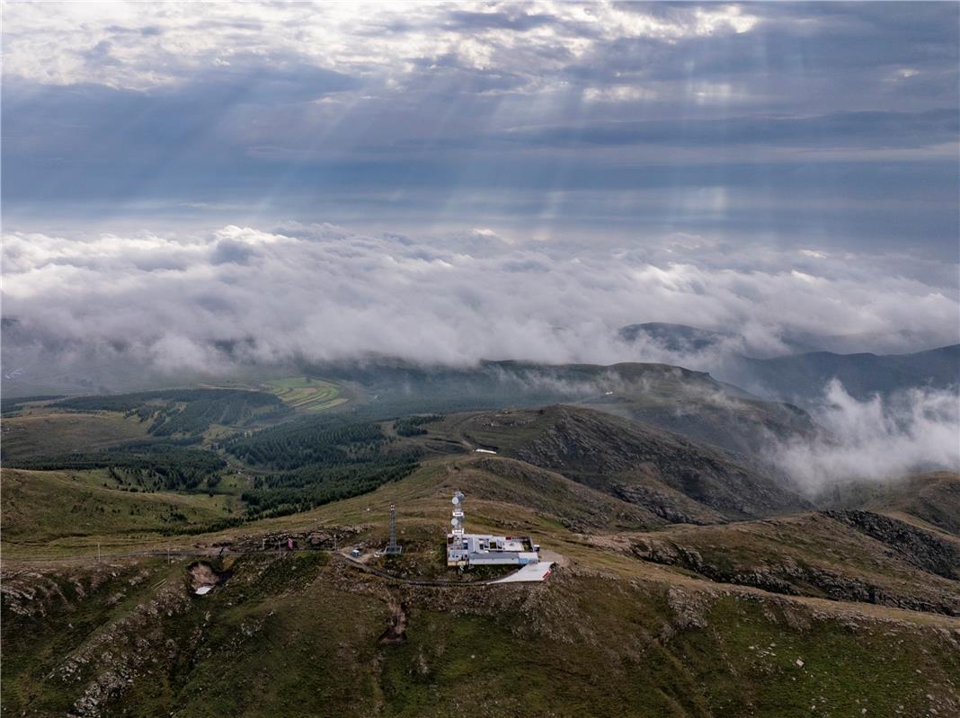 9月21日,航拍清晨中的大青山微波站。