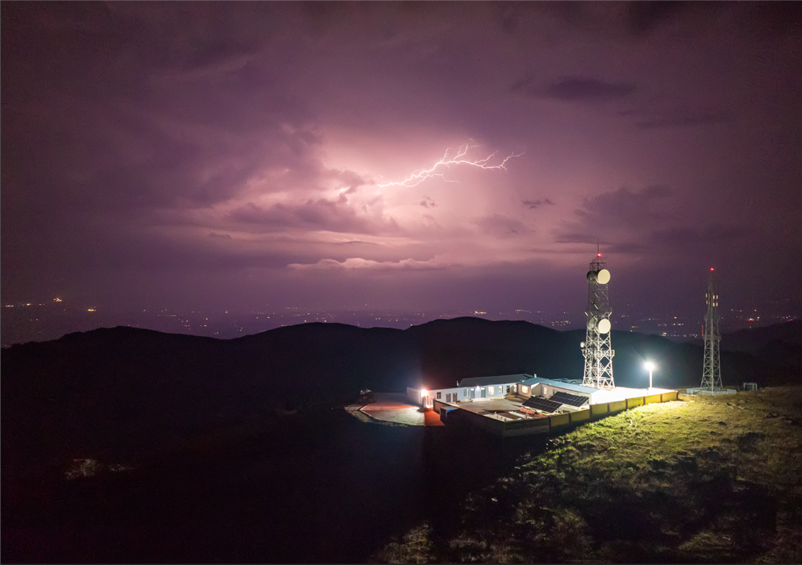 9月21日,夜晚中的大青山微波站。